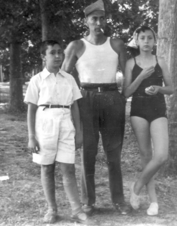 1955 en Aranjuez con mi padre y mi hermana